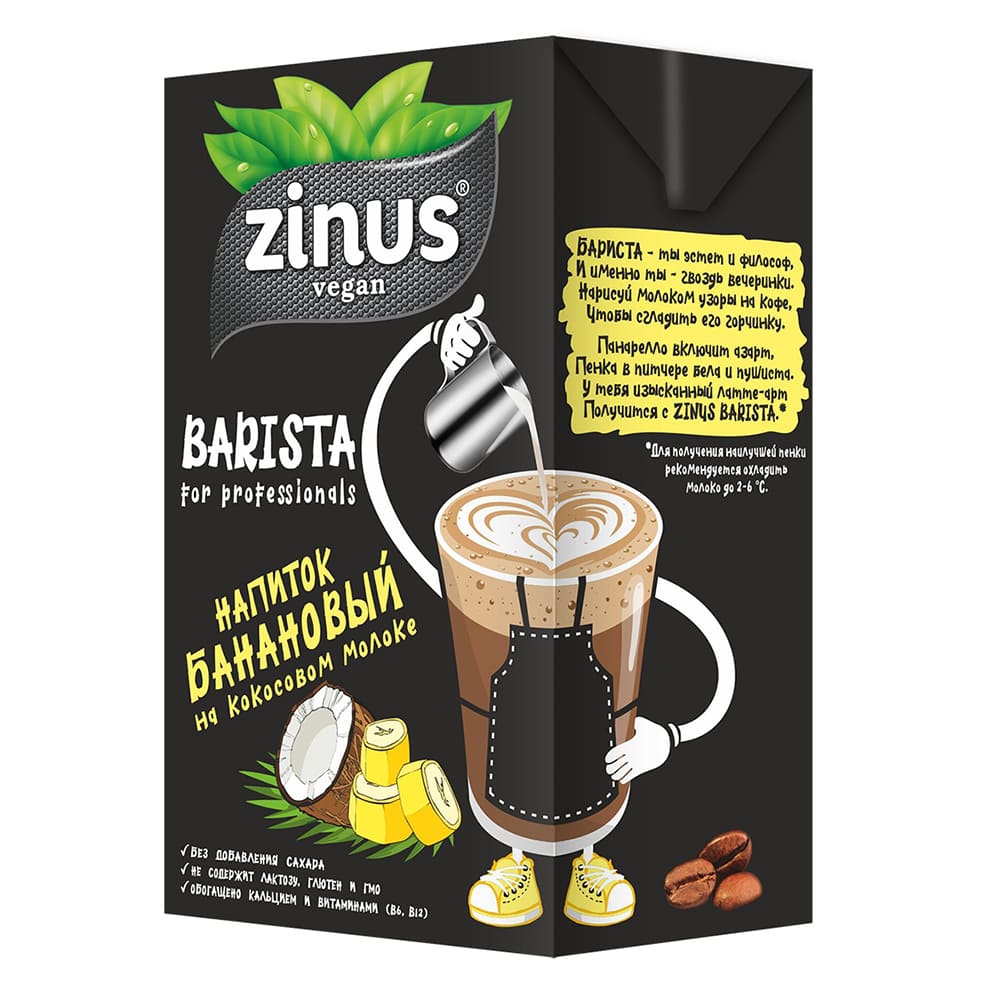Молоко, сливки, крем Растительное молоко Zinus Напиток кокосовый с банановым вкусом "ZINUS BARISTA" МОLОКО КОКОС-БАНАН 3,2%, обогащенный кальцием и