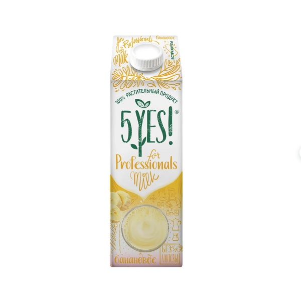 Молоко, сливки, крем Растительное молоко 5YES Напиток соевый с бананом ультрапастеризованный "for Professionals" 5YES! TBA Edge 1 л